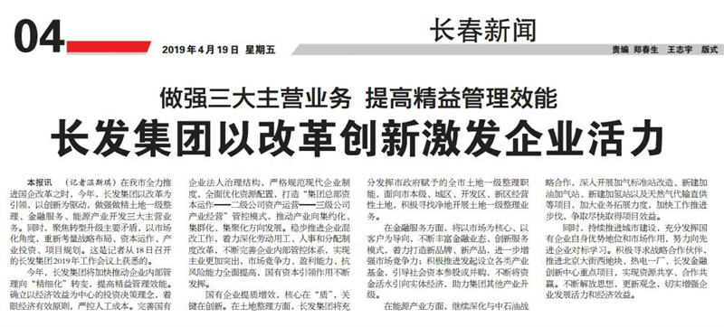 在长春市着力推进国企改革之时,4月18日,6686体育2019年工作会议定下了目标和方向:收缩战线、突出主业、瘦身健体、提质增效,以改革为引领,以创新为驱动,做强做精土地一级整理、金融服务、能源产业开发三大主营业务。聚焦转型升级主要矛盾,以市场化角度,重新考量战略布局…