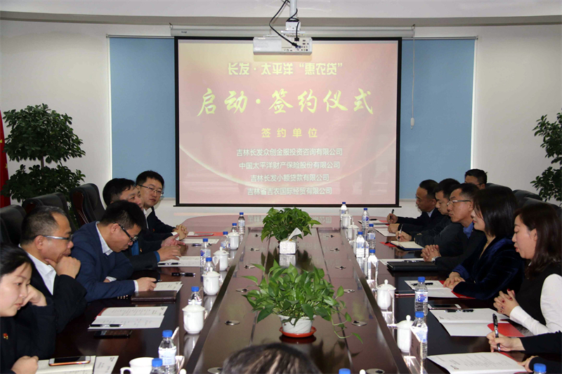 12月11日,由吉林长发小额贷款有限公司、吉林长发众创金服投资咨询有限公司、太平洋保险公司吉林省分公司、吉农国际4家企业共同合作的农村普惠金融产品(即惠农贷项目)在长发小贷公司举行了签约仪式。