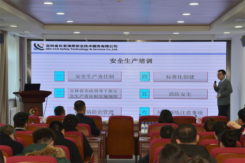 为强化员工的安全生产意识,提高突发事件的应急处置能力,12月26日下午,集团在308会议室开展2018年度安全培训、应急演练专项活动。活动先由长发海昂公司专家围绕安全生产责任制、吉林省党政领导干部安全生产责任制实施细则、职业健康、标准化创建、消防安全、演练注意事项等内容,结合集团实际进行培训和讲解。集团部分领导班子成员、各部室员工、所属企业相关领导、安全管理人员等参加培训。