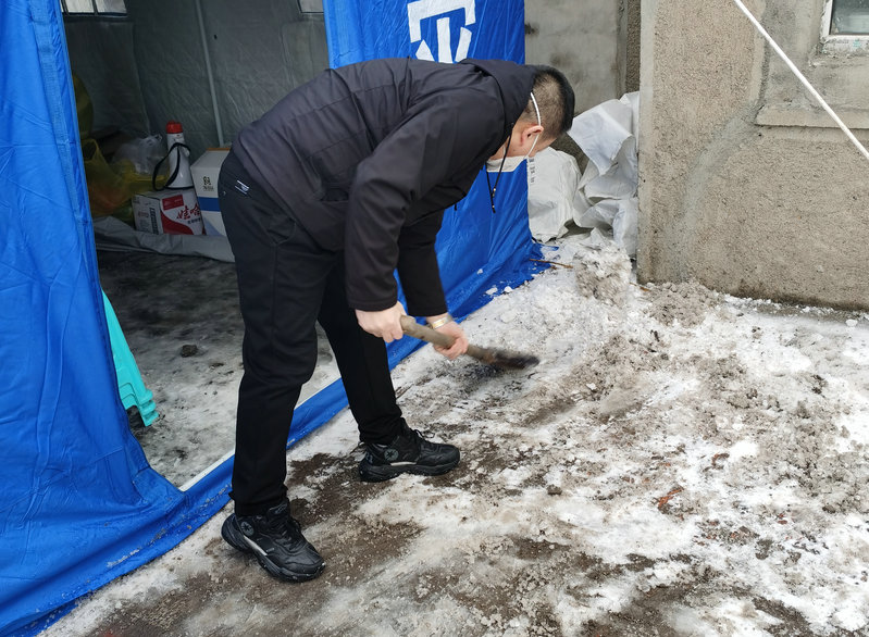 他叫袁建男,抗击疫情的关键时刻,他主动请缨,加入志愿者行列。期间,先被抽调至创业社区和长春机械工业学院,配合工作人员进行核酸检测。随后又驻守在杨柳社区四十五街区进行小区的封控。由于志愿者人手少,没有人替班,他便顶着风雪,在紧贴封条的门前匆匆解决了午餐。几天后,他病倒了,在家休息了半天,感觉稍微好一些后,又去采购了暖贴和坚果,为志愿者们送去物资补给。作为南关区人大代表,疫情期间他积极捐款捐物;作为公司高管,他坚持防疫、工作两不误,白天防疫值守,夜晚联系安排工作,一刻也不曾放松。
