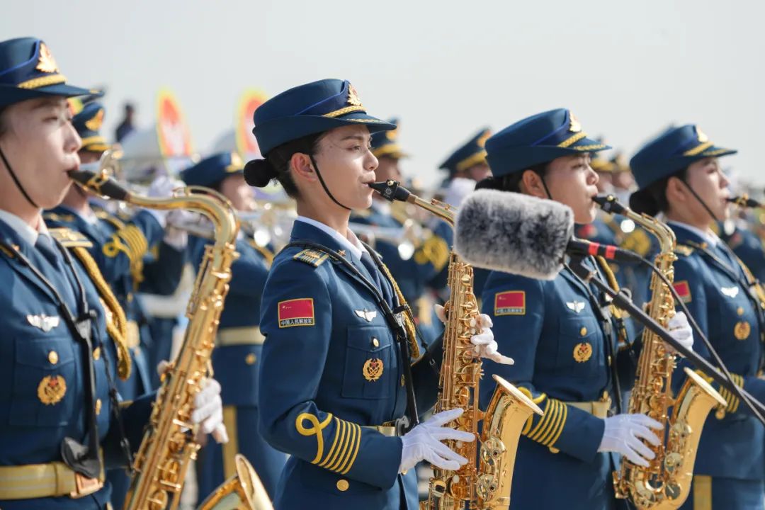 在此次空军航空开放活动·长春航空展上,空军军乐团担负现场暖场预热、仪式司礼、巡游展演等军乐演奏任务,通过军乐吹响新时代制胜空天的奋进号角。
