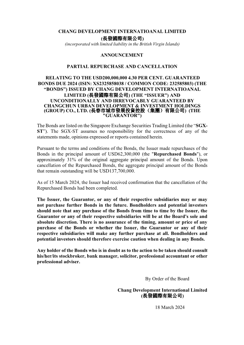 2025-05-15CHANG DEVELOPMENT INTERNATIONAL LIMITED CANCEL PART OF THE BOND