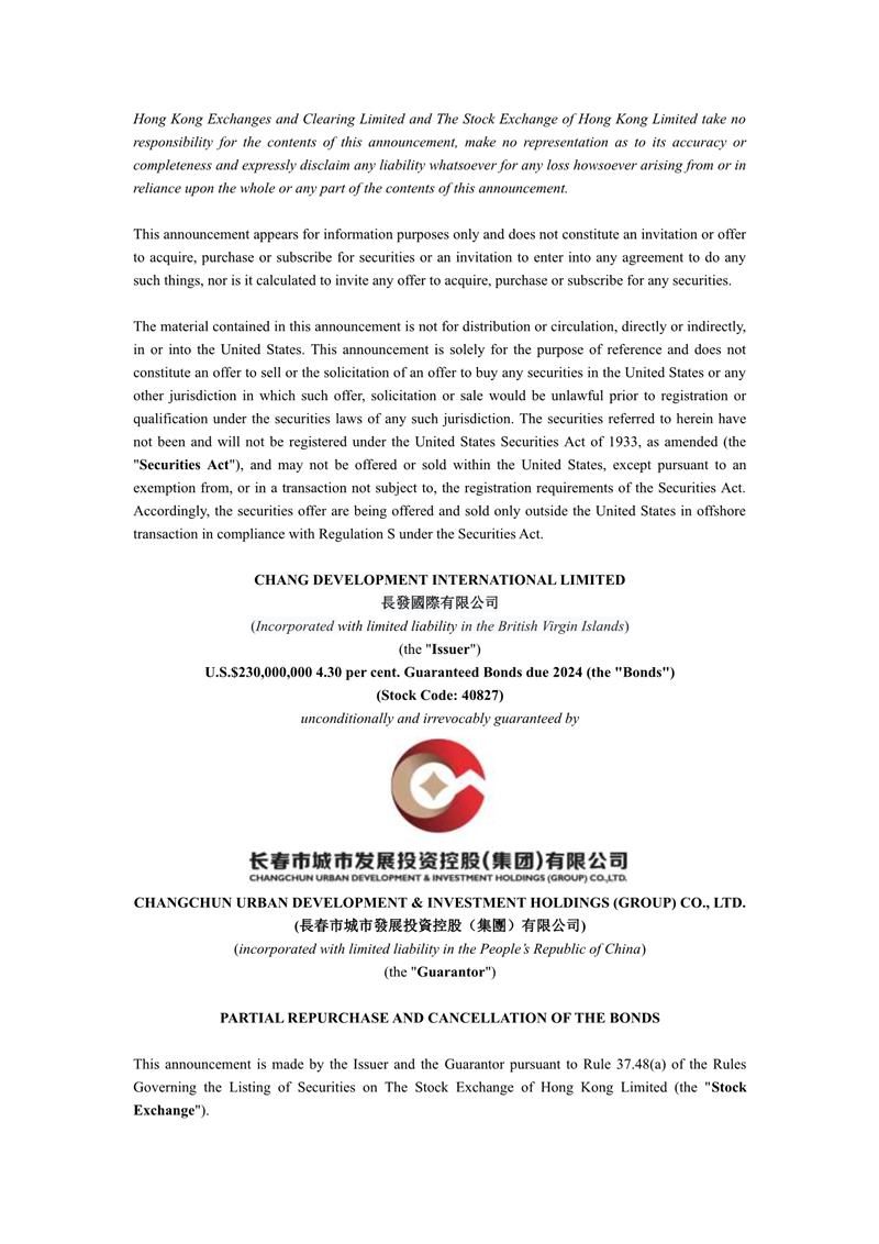 上一篇:Chang Development International Limited - Partial Repurchase and Cancellation Announcement