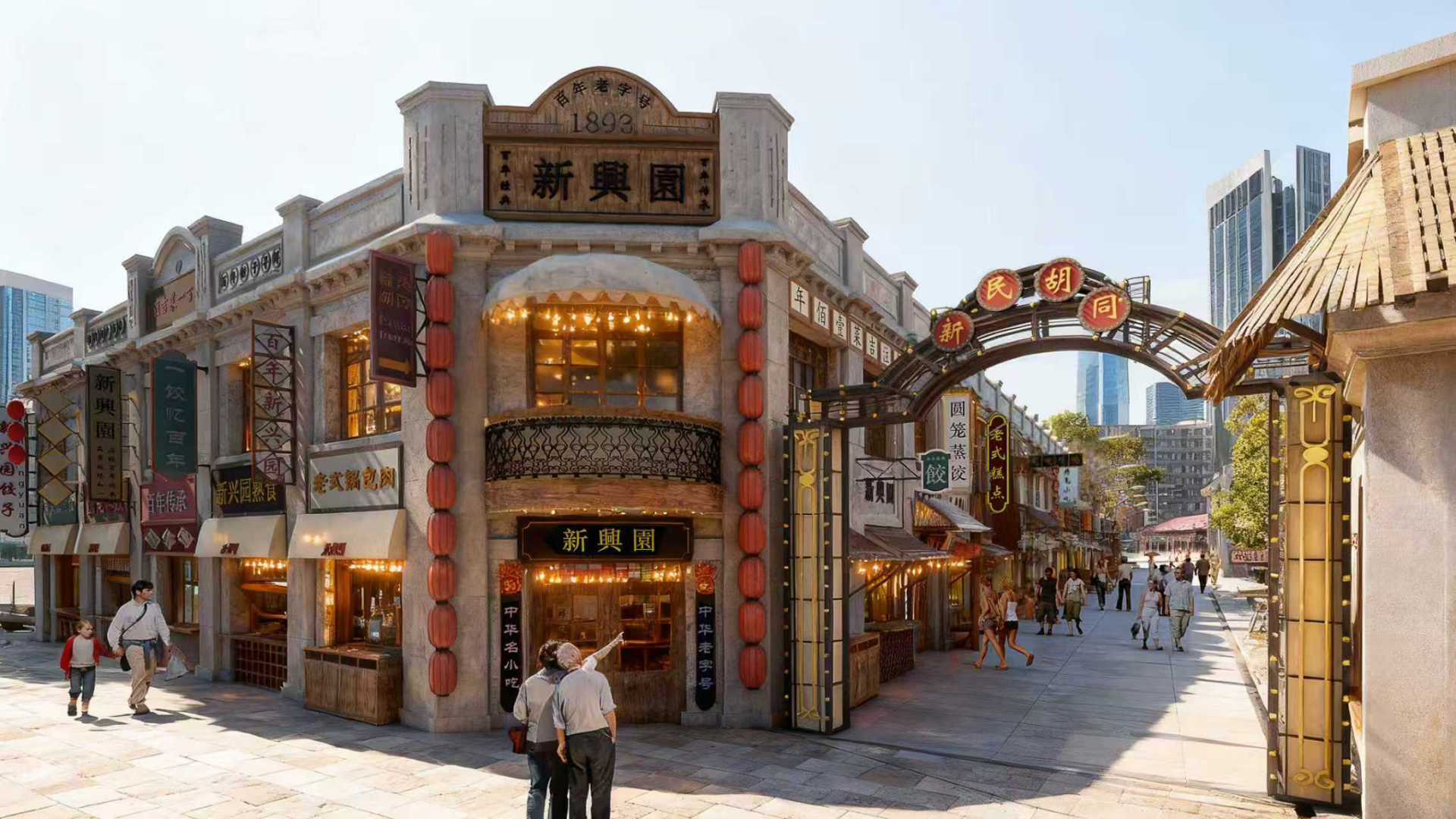 在空间规划上,项目构建起“两轴延展、鱼骨状纵深”的立体生活格局。主街定位为“时尚潮流轴”,聚焦时尚艺术与潮流业态;新民胡同打造为“市井烟火轴”,集聚老字号与特色小吃,两条主轴一动一静、一潮一俗,构筑起街区的商业与情感骨架。新锐品牌引领市场潮流、朝茶暮酒体验全时消费、老字号复兴唤醒百年风味、小吃外摆延续市井烟火,多元建筑风貌垂直对话,丰富业态平面交织,形成了开放式、可漫步的城市记忆共生场。