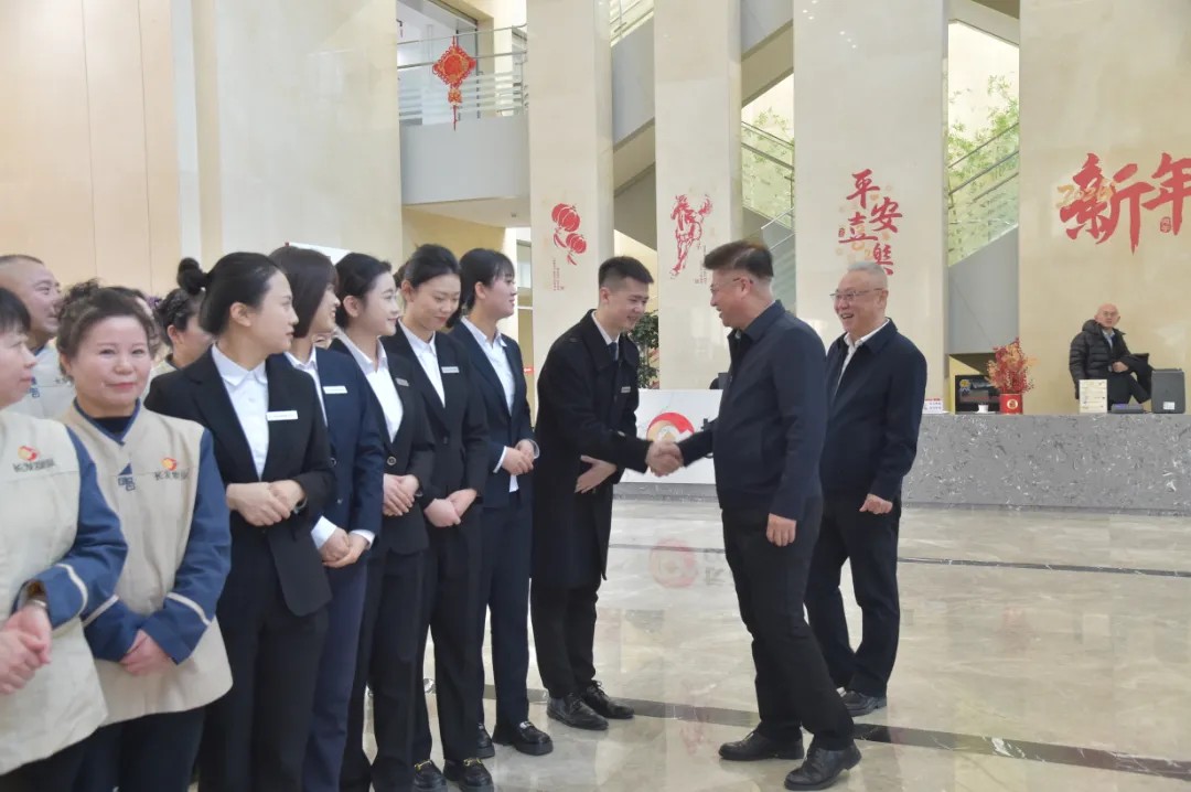 集团主要领导首先与物业公司一线保洁、安保、客服及维修员工亲切交谈,对过去一年来坚守服务一线、默默履职奉献,全力保障集团办公楼宇及项目配套设施有序运转、应急有序处置所付出的辛勤努力给予充分肯定。李平董事长强调,长发物业是集团形象品牌,希望大家继续秉持责任担当,坚守岗位、履职尽责,以更细致的服务、更务实的作风,做好服务保障工作。慰问现场暖意融融,一句句关切的问候,一份份厚重的关怀,让一线员工倍感温暖、深受鼓舞。