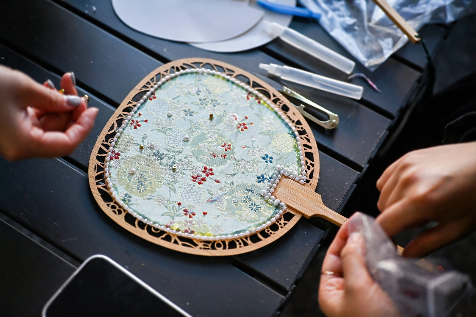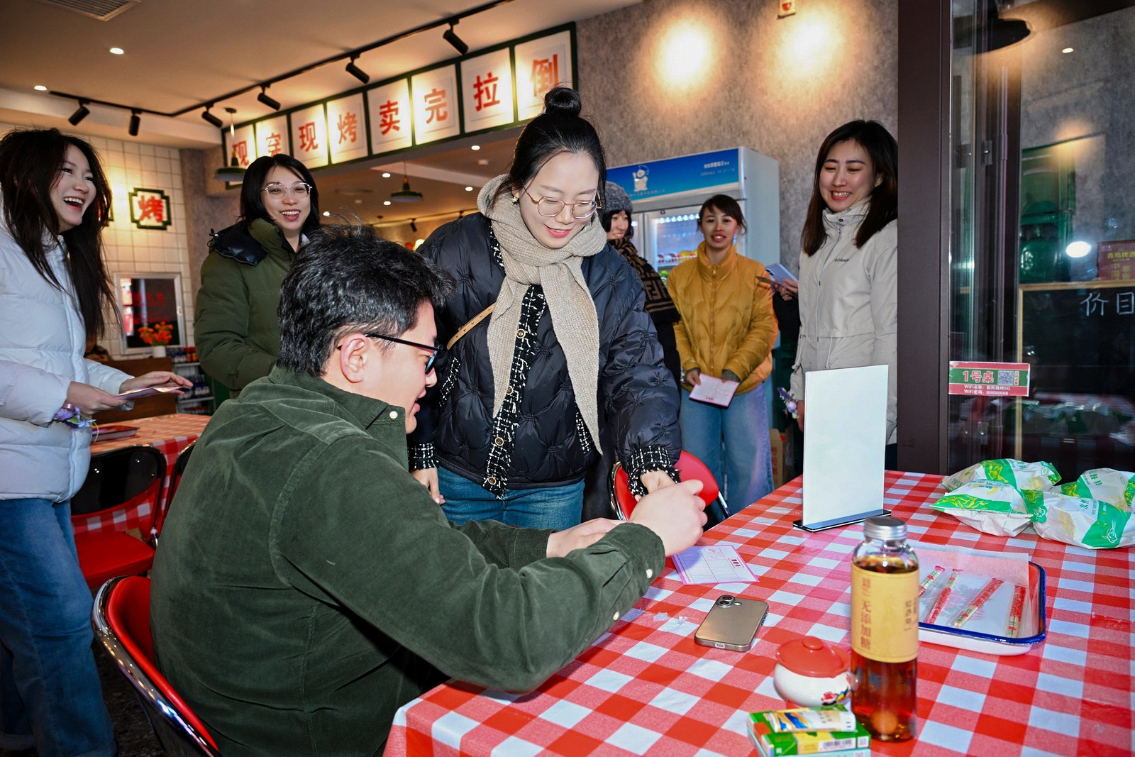 随后,自由体验主题活动正式开启,四海茶社脱口秀品茗、手工创意DIY、旗袍换装打卡拍照、商户联动趣味通关四大特色环节同步开展,让女职工们各享其乐、尽兴参与。在四海茶社,脱口秀表演妙趣横生,女职工们围坐品茗,在欢声笑语中舒缓身心;在手工创意DIY主题区,艾草锤、油画插花、宋锦团扇、口金包四类体验项目各具特色,大家凝神创作,将艺术巧思与心意祝福融入手作;旗袍换装打卡区配备了多款旗袍、油纸伞等道具,女职工们身着雅致旗袍,漫步历史街区,定格古韵芳华;商户联动趣味通关环节更是热闹非凡,女职工们手持明信片,按地图指引完成历史知识答题、马年专属任务、趣味游戏挑战等十项通关游戏,在协作中共度欢乐时光,共享节日喜悦。