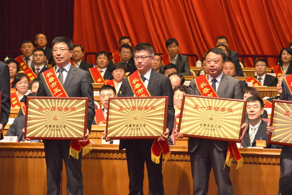 2015年4月26日上午,吉林省暨长春市庆祝“五一”国际劳动节大会在省宾馆召开。大会对今年吉林获得全国和省、市级“五一”劳动奖状、“五一”劳动奖章、工人先锋号的先进集体和先进个人进行了表彰,省人大常委会副主任、省总工会主席李龙熙,长春市委常委、市总工会主席袁玉树分…