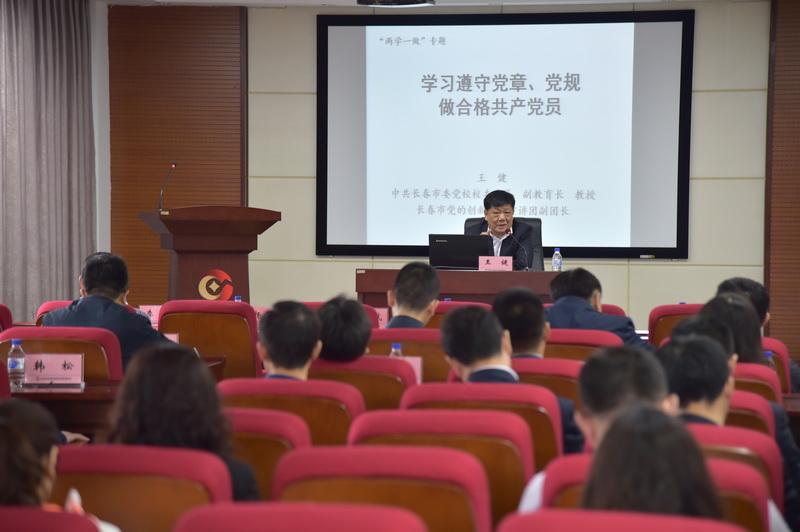 培训由集团党委副书记、纪委书记、工会主席李丹主持,邀请长春市委党校校委委员、副教育长、市委党的创新理论宣讲团副团长王健教授做专题讲解,集团总部全体党员,各分子公司班子成员、党群工作部负责人参加了培训。