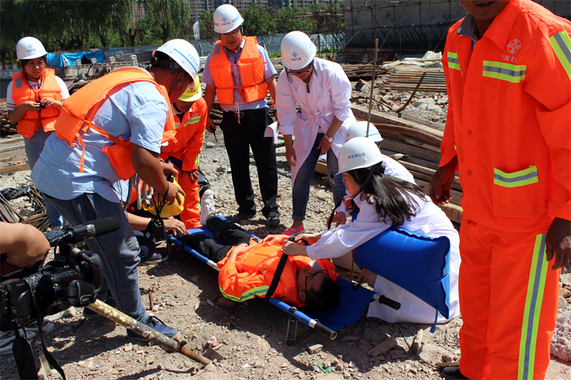 上午9时,在一匡街项目工地现场模拟连续降雨致使伊通河水位上涨,出现险情,项目部启动三级应急响应进行救援。上游新立城水库开闸泄洪,建设单位防洪总指挥接到汇报后命令启动二级应急响应程序,在洪峰到达之前,进行过水断面的开挖疏通,保证洪峰安全迅速通过。在组织人员撤离现场时,有人员被困于事故现场,各小组联动配合,将被困人员安全救出并送往医院救治。演练历时40分钟,取得圆满成功。