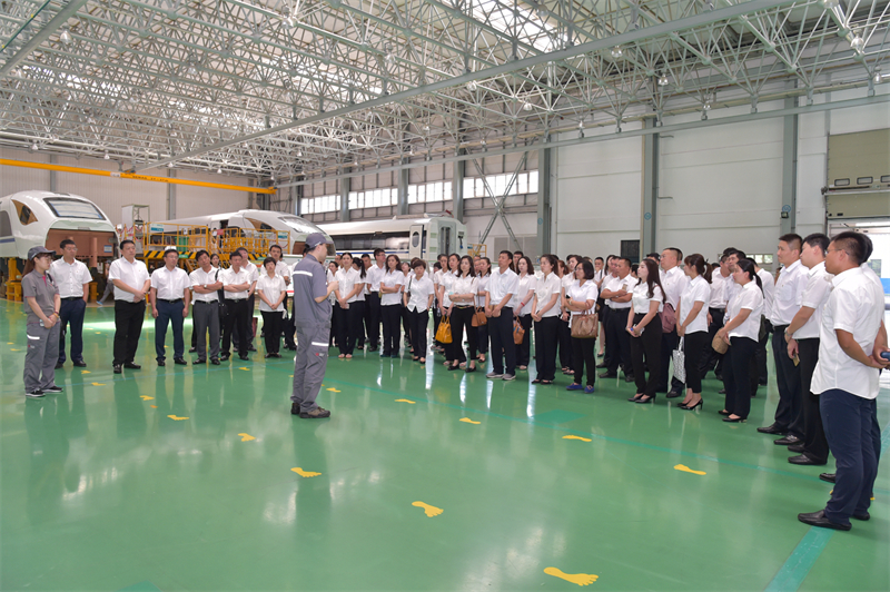 7月21日上午,在集团领导李丹、王永安的带领下,所属党支部书记和委员、党群工作部门负责人及党小组组长等80余人,来到中车长春轨道客车股份有限公司动车组制造中心进行了参观。参训人员在工作人员的引导下,在总装车间听取企业发展情况介绍,现场参观高速动车组生产线,了解动车组的工艺流程、安全性能等。