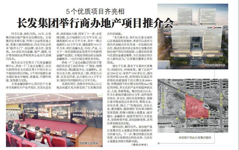 推介会全方位展示了长发金融创新中心、热电一厂工业企业搬迁、北京大街西历史文化街区等5个项目共12个地块的项目详情。5个项目纵跨长春主城区南北中轴线,质量高、可操作性强、发展潜力无限。
