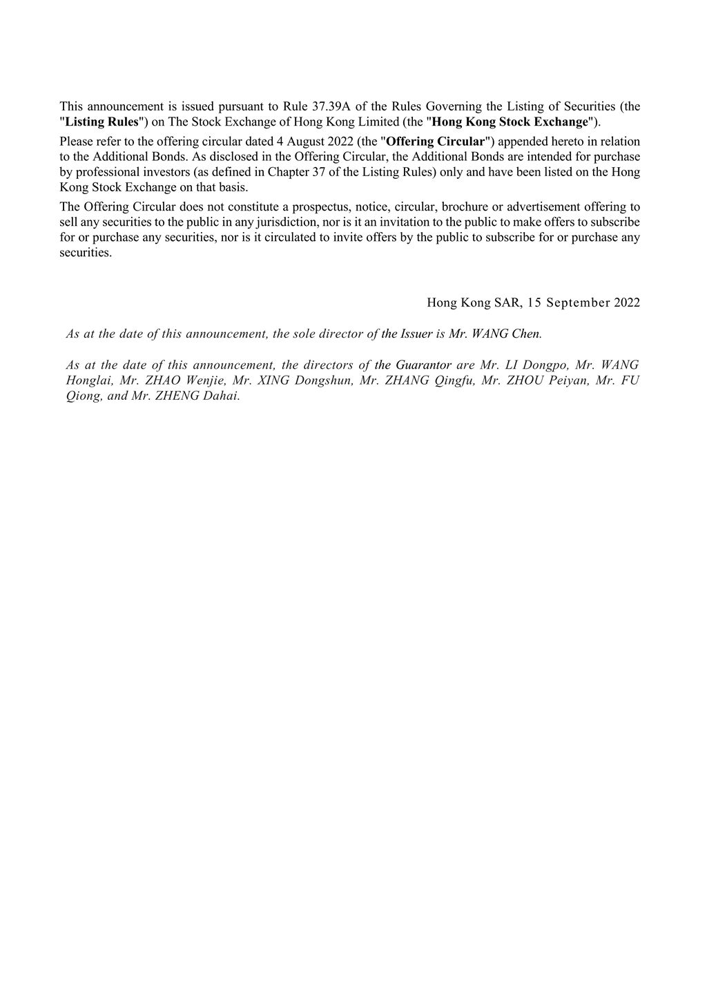 上一篇:CHANG DEVELOPMENT INTERNATIONAL LIMITED CANCEL PART OF THE BOND (CCUDIH 3.9 09/12/2022)