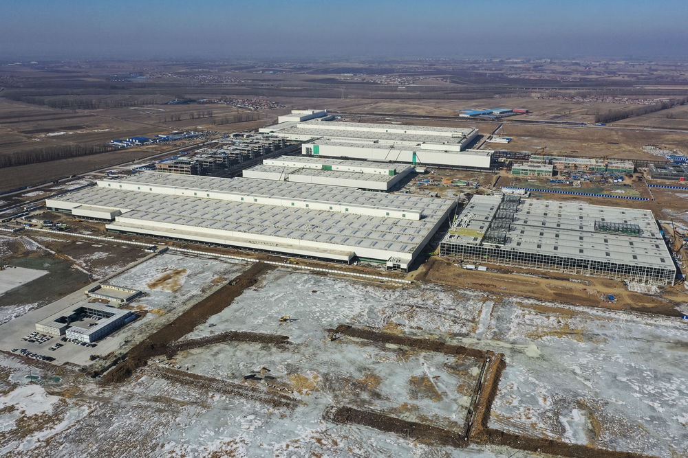 这是2月21日无人机拍摄的奥迪一汽新能源项目施工现场。新华社记者许畅 摄