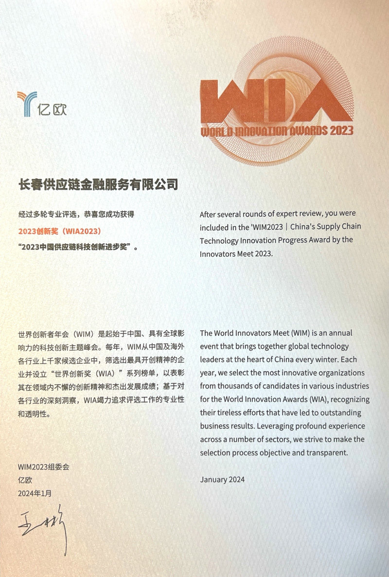 长春供应链金融服务有限公司(以下简称“长发供应链公司”)在经过多轮专业评选后,凭借在运用科技平台串联供应商紧密协作中的卓越表现,成功获得供应链科技创新领域“2023中国供应链科技创新进步奖”。此项荣誉是对长发供应链公司在供应链科技创新领域取得成果的充分肯定。