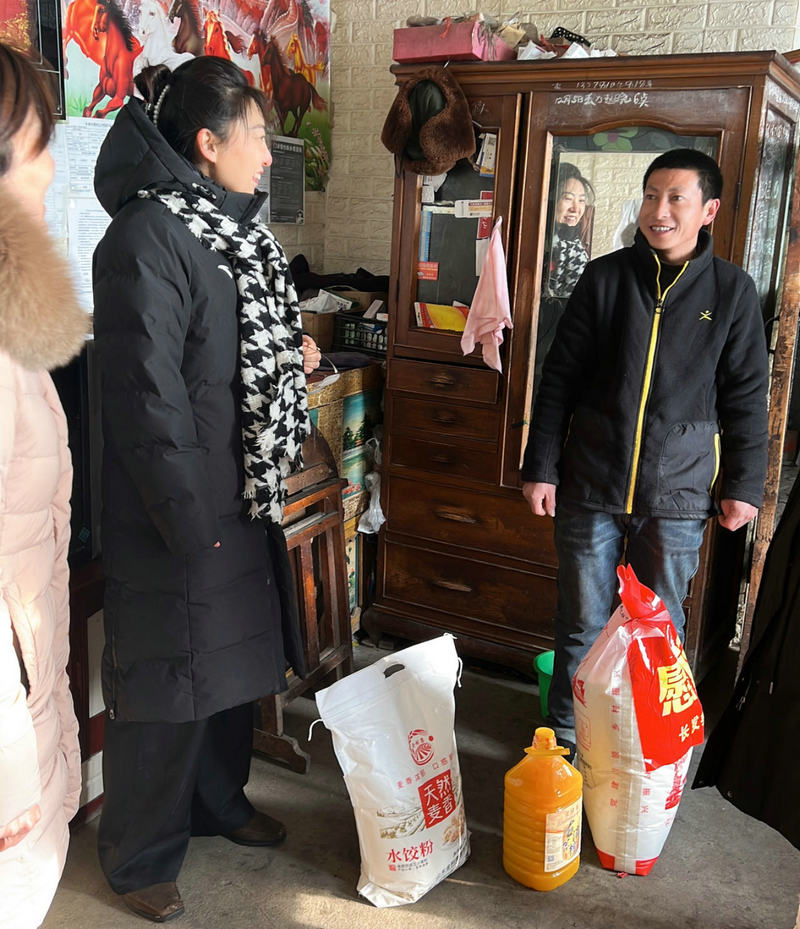 春节将至,年味渐浓。为把新春祝福及时送到帮扶群众心中,集团党委委员、纪委书记、监察专员陆金荣代表6686体育党委来到包保帮扶单位农安县巴吉垒镇双榆树村和宽城区万兴社区,开展春节前送爱心、送温暖走访慰问活动。集团人力资源总监张英娇参加活动。