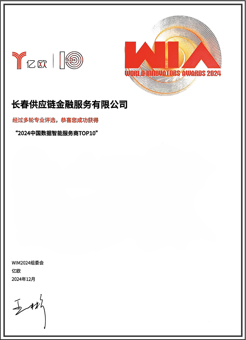 2024年12月,在VIM 2024创新者年会上,供应链公司凭借在运用科技平台串联供应商紧密协作中的卓越表现,荣获由中国产业发展促进会与亿欧颁发的“2024中国数据智能服务商TOP10”奖项。这是继2023年度获“中国供应链科技创新进步奖”后的又一佳绩,标志着行业对供应链公司在数据智能领域的认可。