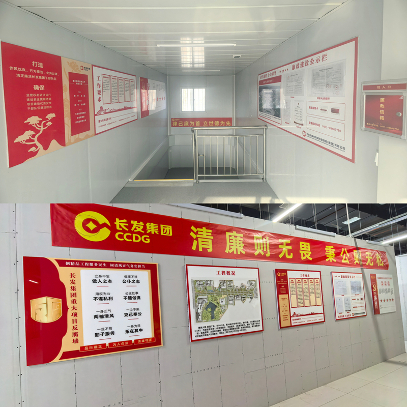 施工现场严格按照“六有”标准,高标准推进廉洁工地建设,包括设置廉政建设展板、反腐墙和公示栏等设施。宣传内容全面且贴近实际,涵盖施工质量、安全生产、廉洁从业等多个方面。同时,通过设立举报信箱、向各重大项目相关人员发放《廉政监督卡》等方式,公开举报电话及电子邮箱,构建起“线上+线下”联动的立体监督网络,充分调动了现场人员的监督积极性,为压实责任、兑现承诺提供了有力保障。
