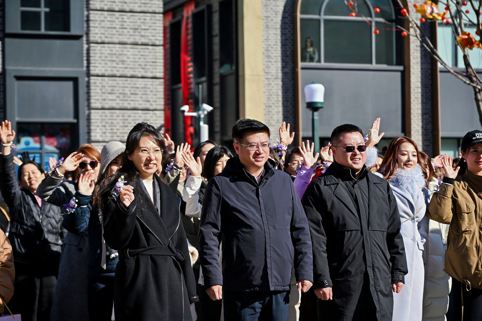 活动伊始,女职工们在商埠地小广场有序集合,领取手腕花并抽签站队,一张张笑脸让春日的街区更添暖意。李平董事长在致辞中代表集团党委、集团工会,向坚守在集团各条战线、各个岗位的女职工致以节日的祝贺与真挚的感谢。他表示,广大长发女职工以巾帼不让须眉的豪情与担当,在不同岗位上严谨履职、奋勇拼搏、默默奉献,用实际行动诠释新时代女性的独立与自信,为集团高质量发展撑起了“半边天”。同时,他希望女职工们能在此次活动中卸下工作忙碌,尽情享受专属美好,始终保持对生活的热爱与对美好的追求,永远绽放独属于自己的耀眼光芒。致辞结束后,集团领导与全体女职工合影留念,定格春日美好瞬间。
