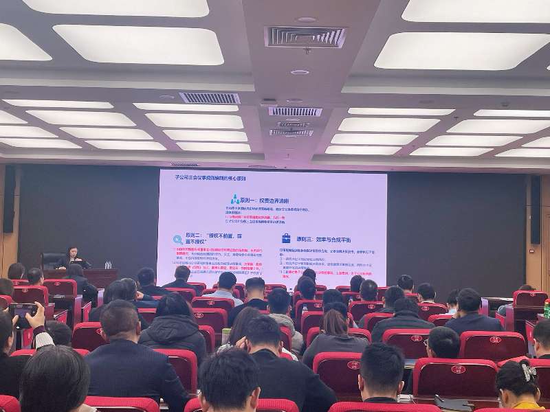 3月20日下午,为深入贯彻集团治理体系建设要求,进一步规范集团及子公司“三会”(党委会、董事会、总经理办公会)运作流程,明晰治理主体权责边界,提升相关人员议事规则修订与实务操作能力,风控合规部在6686体育三楼多媒体1会议室成功举办公司治理体系建设专题培训。集团相关职能部门及各级子公司具体工作负责人、经办人员共计137人参加培训。