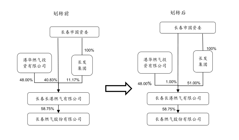 本次无偿划转完成后,本公司将直接持有长港燃气51%的股权,成为其控股股东,同时将间接控制上市公司长春燃气股份有限公司(以下简称“长春燃气”)58.75%的股份,将成为长春燃气的间接控股股东。